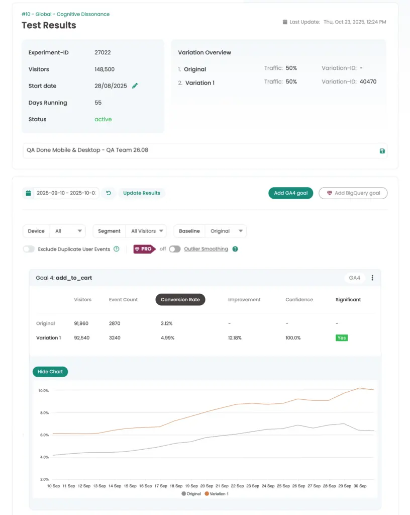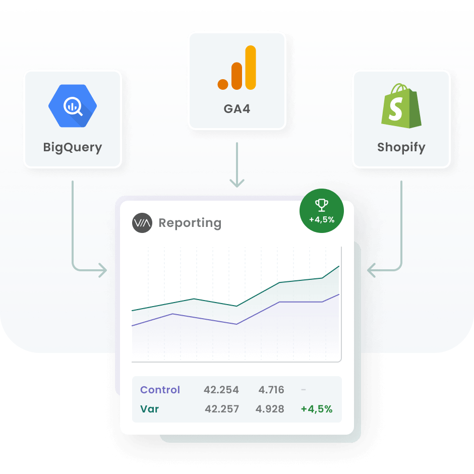 Experiment results are evaluated directly using your existing web analytics data - seamlessly integrated into Varify’s reporting.