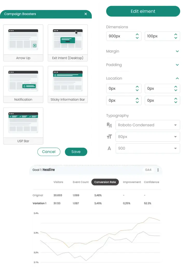 You can also use ready-made campaign boosters such as notifications or exit intent layers to get started right away.